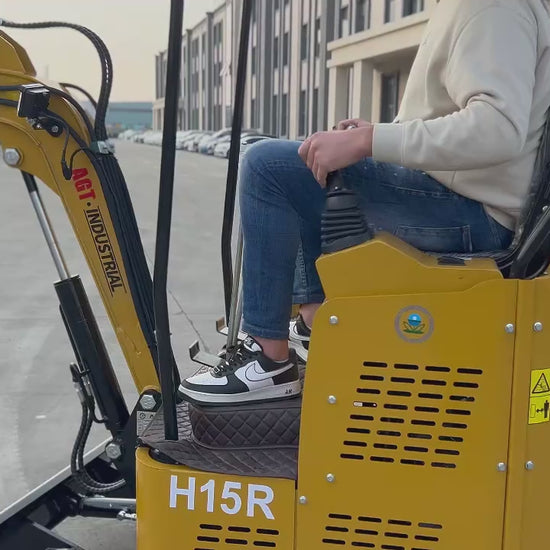 - The AGT-H15R Mini Excavator is perfect for small to medium-sized projects, offering acompact 1-ton design and a maximum digging depth of 5.41 feet. ldeal for tight spaces like gardens, parks, and orchards, it combines maneuverability with enhanced safety features, including internal hydraulic hoses and rear-opening compartments for easy maintenance.