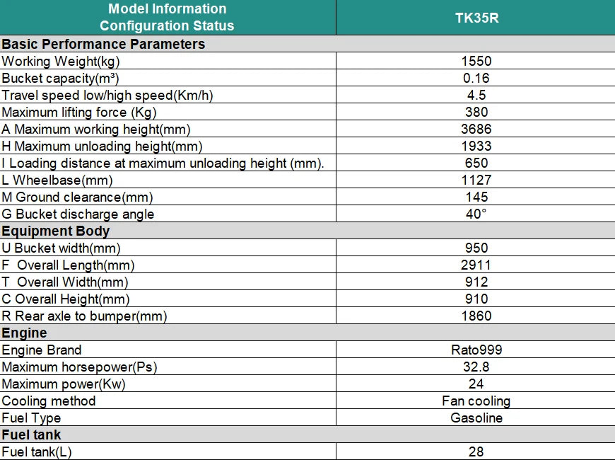 Agrotk 1.5ton Mini Skid Steer Track Loader 32.8HP Gasoline RATO 999 Engine TK35R