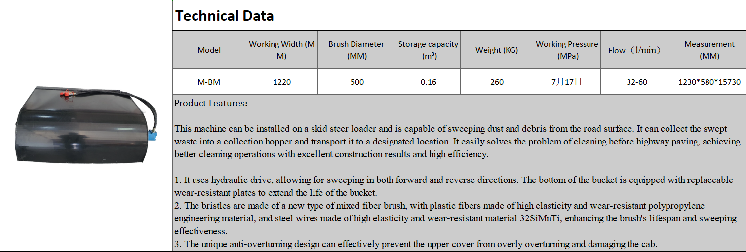 Keep jobsites, driveways, and shop yards clear of dirt and debris with the M-BM boxbroom sweeper. A reinforced steel housing and heavy-duty bristles deliver reliablecleanup, and the fixed straight design keeps operation simple and consistent.
